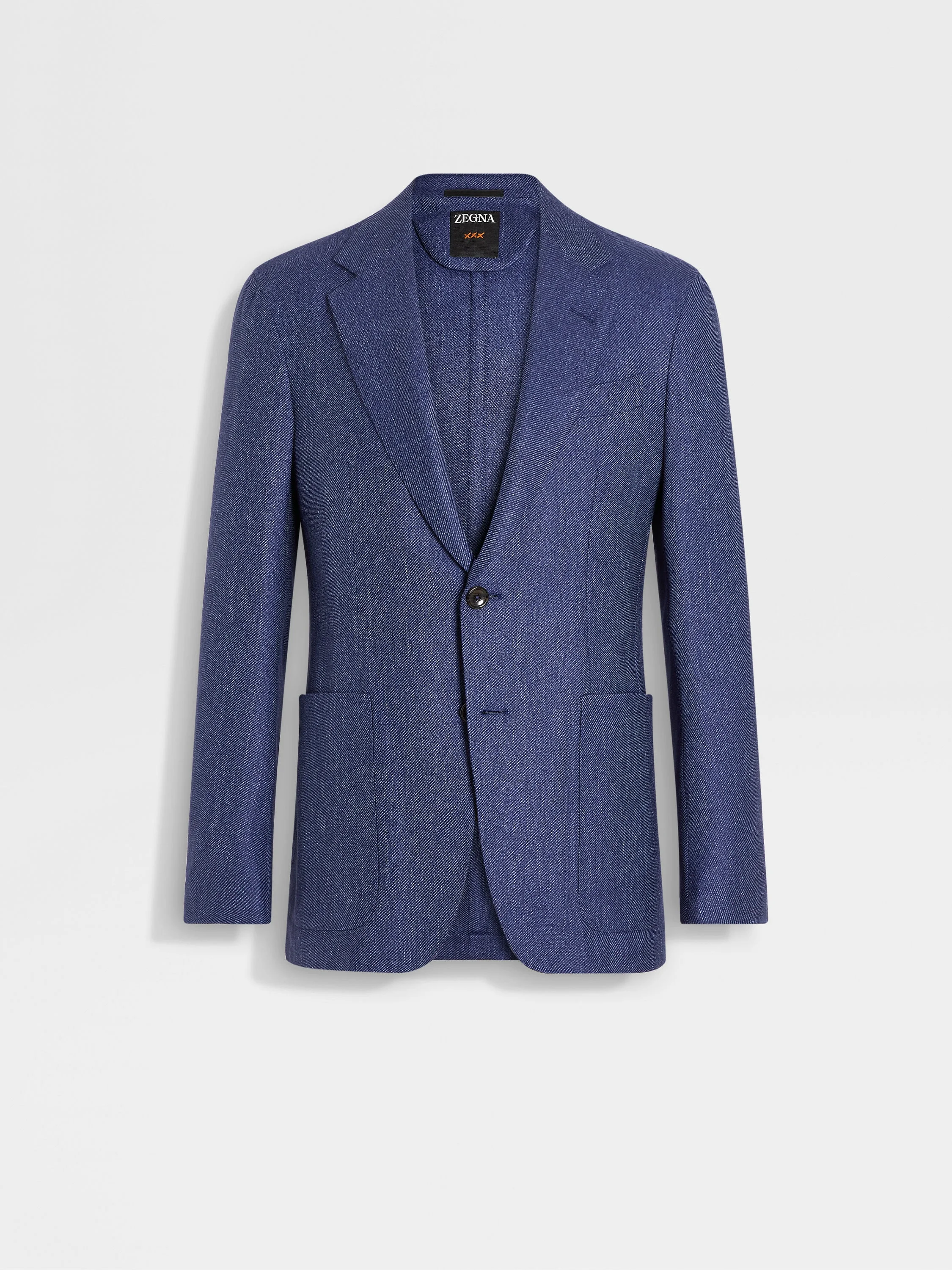Breezy but chic: this ink blue jacket is crafted from luxurious silk-cashmere-linen fabric. INFO A silk-cashmere-linen blend and refined sartorial details: this ink blue jacket is the epitome of breezy sophistication. Left unlined, it features double vents, patch pockets and notch lapels for a timeless look. PRODUCT CODE 259566A2-10JCN0 MATERIALS AND CARE 64% Cashmere; 23% Mulberry Silk; 13% Linen Do not wash. Do not bleach. Do not tumble dry. Iron at max 110° C. Professional dry cleaning in tetrachloroethene and hydrocarbons, mild process. FIT AND PRODUCT DETAILS • Regular fit • Tailoring jacket • Double vents • Notch lapels • Button closure • Patch pockets • Deconstructed, canvas • Unlined • 75 cm length on size 48