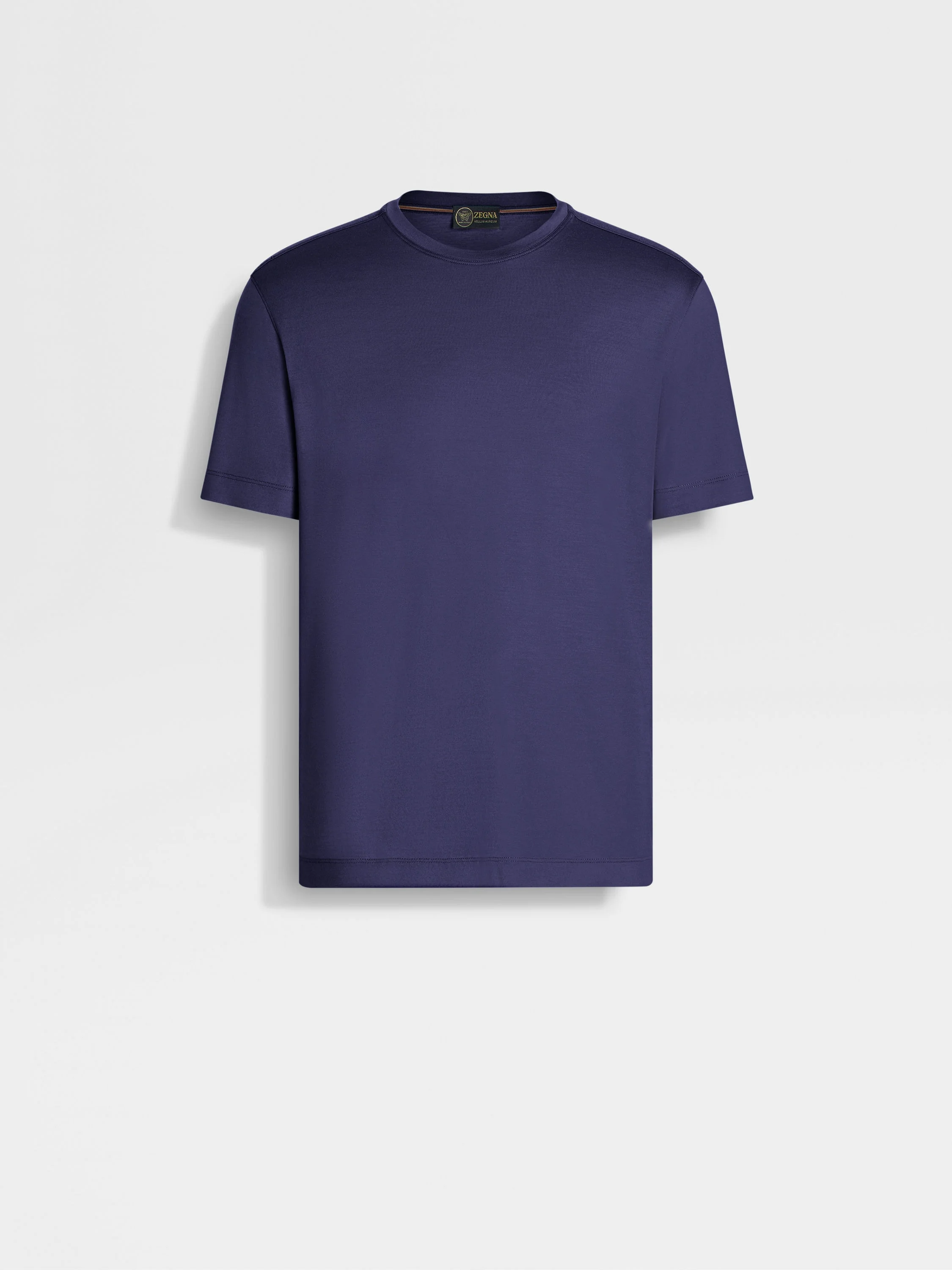 Casual luxury at its finest: this ink blue T-shirt showcases the beauty of ZEGNA's Vellus Aureum fibers. INFO This ink blue T-shirt elevates the everyday basic with the impeccable elegance of ZEGNA's exclusive Vellus Aureum fabric, spun from ultra-fine wool fibers. Tubular trims, side vents and a button closure elevate its timeless crew-neck silhouette with laid-back allure. PRODUCT CODE UGV97A2-GV7VL8-B06 MATERIALS AND CARE 100% Wool Vellus Aureum was inspired by our Founder’s quest for excellence to seek the finest wool in the world. Exquisitely fine in texture and rare, Vellus Aureum is crafted from 100% certified traceable wool fibres. Do not wash. Do not bleach. Do not tumble dry. Iron at max 110°C. Professional dry cleaning in hydrocarbons, mild process. Do not iron with steam. FIT AND PRODUCT DETAILS • Regular fit • Short sleeves • Crewneck collar • Tubular hem and cuffs • Button closure • Side vents