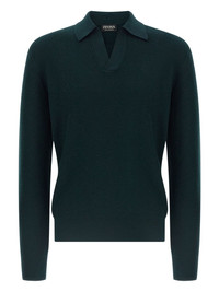 jacquard oasis T-shirt Highlights - Green - V-neck - Collar - Long sleeves - Cuffs - Dropped shoulder Made in Italy Composition Cashmere 100%