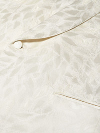 jacquard silk-wool evening jacket Showcasing Ermenegildo Zegna's elegant style, this blazer is elevated with a subtle jacquard pattern. Shawl lapels and an off-centre button fastening add to the refined look. Highlights - White - Mulberry silk-wool blend - Patterned jacquard - Shawl lapels - Off-centre front button fastening - Long sleeves - English rear vents - Two side welt pockets Made in Italy Composition Mulberry Silk 71%, Wool 29%