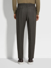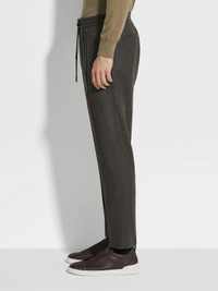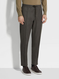 Luxury materials elevate the khaki 15milmil15 wool joggers. INFO Zegna's superfine Australian wool is blended with silk and cashmere to create the khaki 15milmil15 wool joggers. As part of a vision of luxury leisurewear, this refined material is paired with a familiar, sporty style and sewn details. The joggers are lined with cotton, and a drawstring waistband ensures the perfect fit. PRODUCT CODE UEI20A8-TT18-V94 MATERIALS AND CARE Main body: 89% Wool; 6% Mulberry Silk; 5% Cashmere Lining: 100% Cotton 15milmil15 is crafted from superfine wool that measures just 15.2 microns in diameter. Incredibly soft and lightweight, it is well suited for sophisticated garments. Do not wash. Do not bleach. Do not tumble dry. Iron at max 110°C. Professional dry cleaning in hydrocarbons, mild process. Wash inside out. Protect metal tips during washing. FIT AND PRODUCT DETAILS • Jogger fit • 17.5 open hem • Drawstring closure • Sewn details • Slanted pockets and back welt pocket