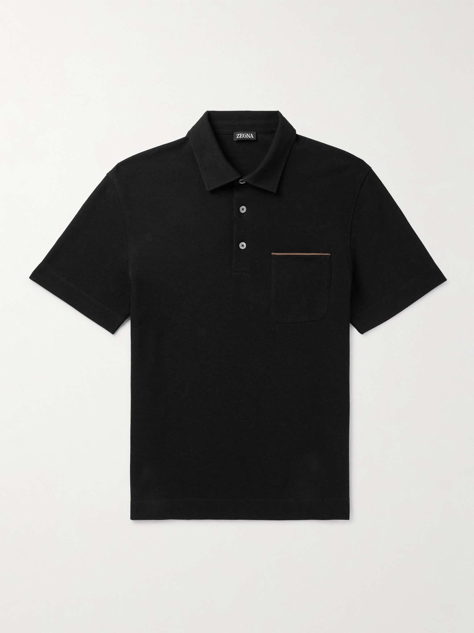ZEGNA's polo shirt is an elegant take on a casual staple. It's cut from cotton-piqué and detailed with a single patch pocket topped with a contrasting leather trim. The black hue will work well with almost anything. Size & Fit - Fits true to size. Take your normal size - Designed for a regular fit - Mid-weight, slightly stretchy fabric - Model is shown wearing an IT 48 - Model measures: chest 38"/ 96cm, height 6'1"/ 185cm Details & Care - Black cotton-piqué, brown leather (Calf) - Button fastenings - 100% cotton - Hand wash - Mother-of-pearl: Tahiti