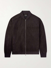 Impeccable fabrics and tailoring expertise elevate ZEGNA's wardrobe staples beyond the everyday. Taking cues from utility styles, this bomber jacket has been crafted in Italy from plush suede and is subtly trimmed with leather along the front welt pockets. It's lined in a smooth silk-blend for comfortable layering. Size & Fit - Model wears a size smaller to achieve a closer fit - Supple, non-stretchy suede - Model is shown wearing an IT 46 - Model measures: chest 38"/ 96cm, height 6'1"/ 185cm Details & Care - Dark-brown suede and leather - Two-way zip fastening - 100% suede (Lamb); trim: 100% leather (Calf); lining: 63% silk, 37% polyamide - Specialist clean