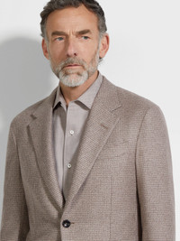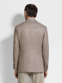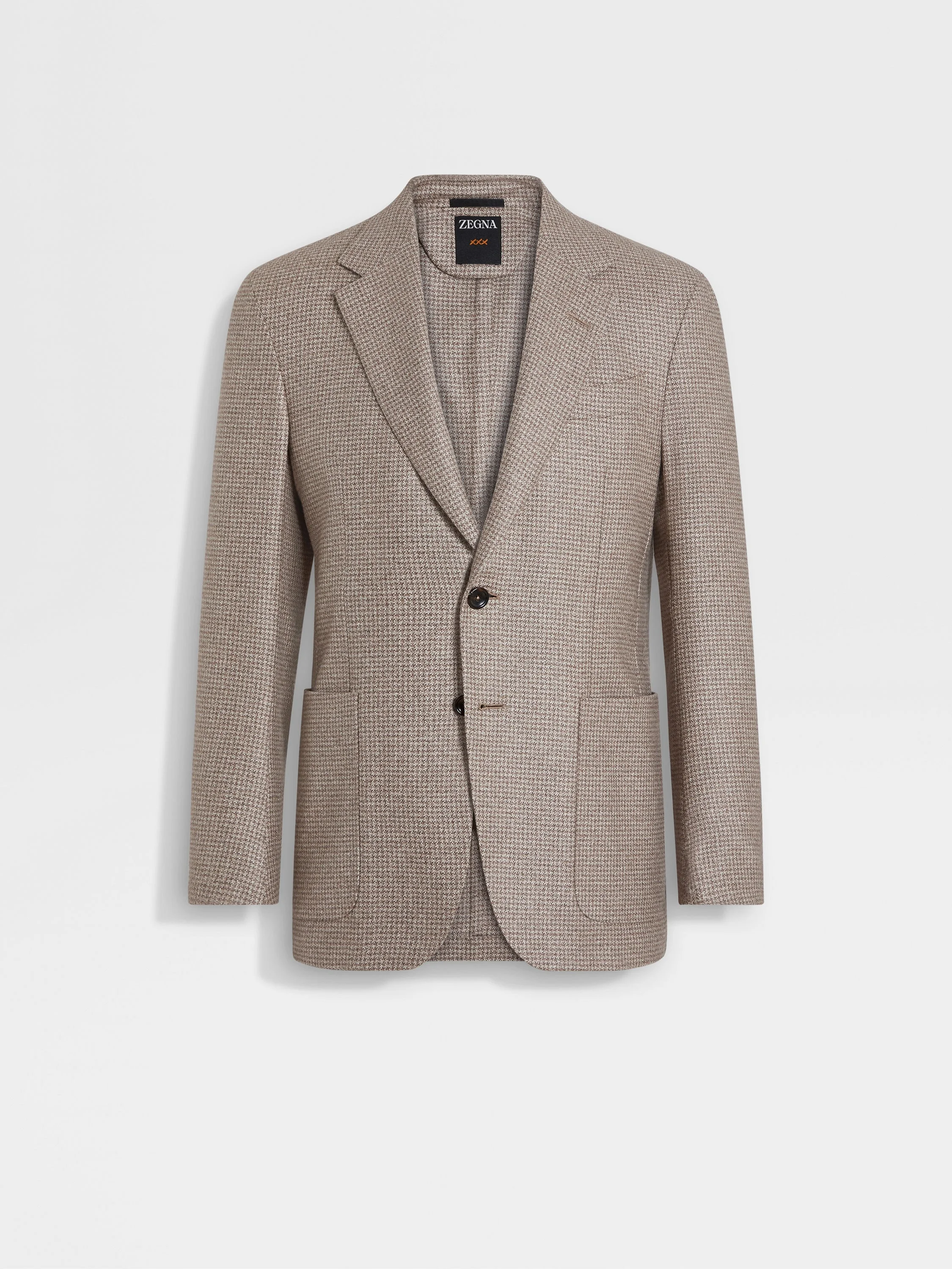 Soft to the touch and refined on the eye, this light beige and light taupe houndstooth jacket is made from a cashmere and silk blend. INFO Nothing says effortless luxury like a refined blend of cashmere and silk. Elevating smart ensembles with effortless finesse, this double-vent jacket boasts a timeless houndstooth motif in an understated light beige and light taupe palette. Left unlined and elevated with sleek notch lapels. PRODUCT CODE 259060A2-10JCN0 MATERIALS AND CARE 51% Mulberry Silk; 49% Cashmere Do not wash. Do not bleach. Do not tumble dry. Iron at max 110° C. Professional dry cleaning in tetrachloroethene and hydrocarbons, mild process. FIT AND PRODUCT DETAILS • Regular fit • Tailoring jacket • Double vents • Notch lapels • Houndstooth pattern • Button closure • Patch pockets • Deconstructed, canvas • Unlined • 75 cm length on size 48