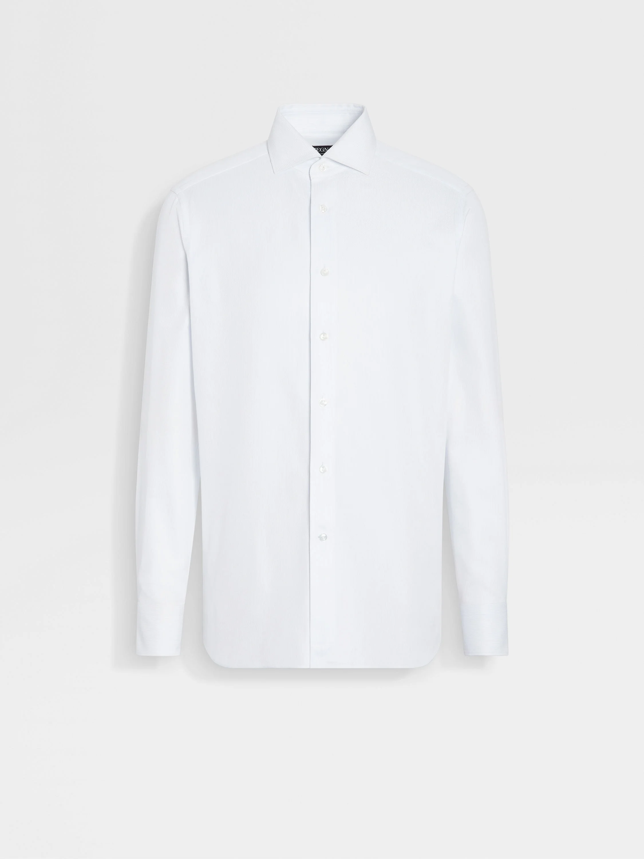 This light blue and white structured micro-striped shirt is crafted from exclusive Centoventimila cotton. INFO Made from superior Centoventimila cotton, this long-sleeve shirt offers a super-smooth, lightweight feel against the skin. Designed with a structured micro-striped pattern in a timeless light blue and white palette, its smart silhouette is topped with a spread collar. PRODUCT CODE 202003A2-9NS0LB MATERIALS AND CARE 100% Cotton Centoventimila – Italian for 120,000 – is named after its high thread count. Garments crafted from this fabric are extremely lightweight and have a soft, silk-inspired hand feel. Max washing temp 40°C. Do not bleach. Do not tumble dry. Iron at max 150°C. Professional dry cleaning in tetrachloroethene and hydrocarbons. FIT AND PRODUCT DETAILS • Regular fit • Tailoring shirt • Spread collar • Standard cuffs • Button closure • Structured micro-striped pattern • 79 cm length on size 39