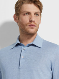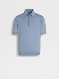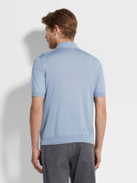 LIGHT BLUE MÉLANGE SILK CASHMERE AND LINEN POLO SHIRT