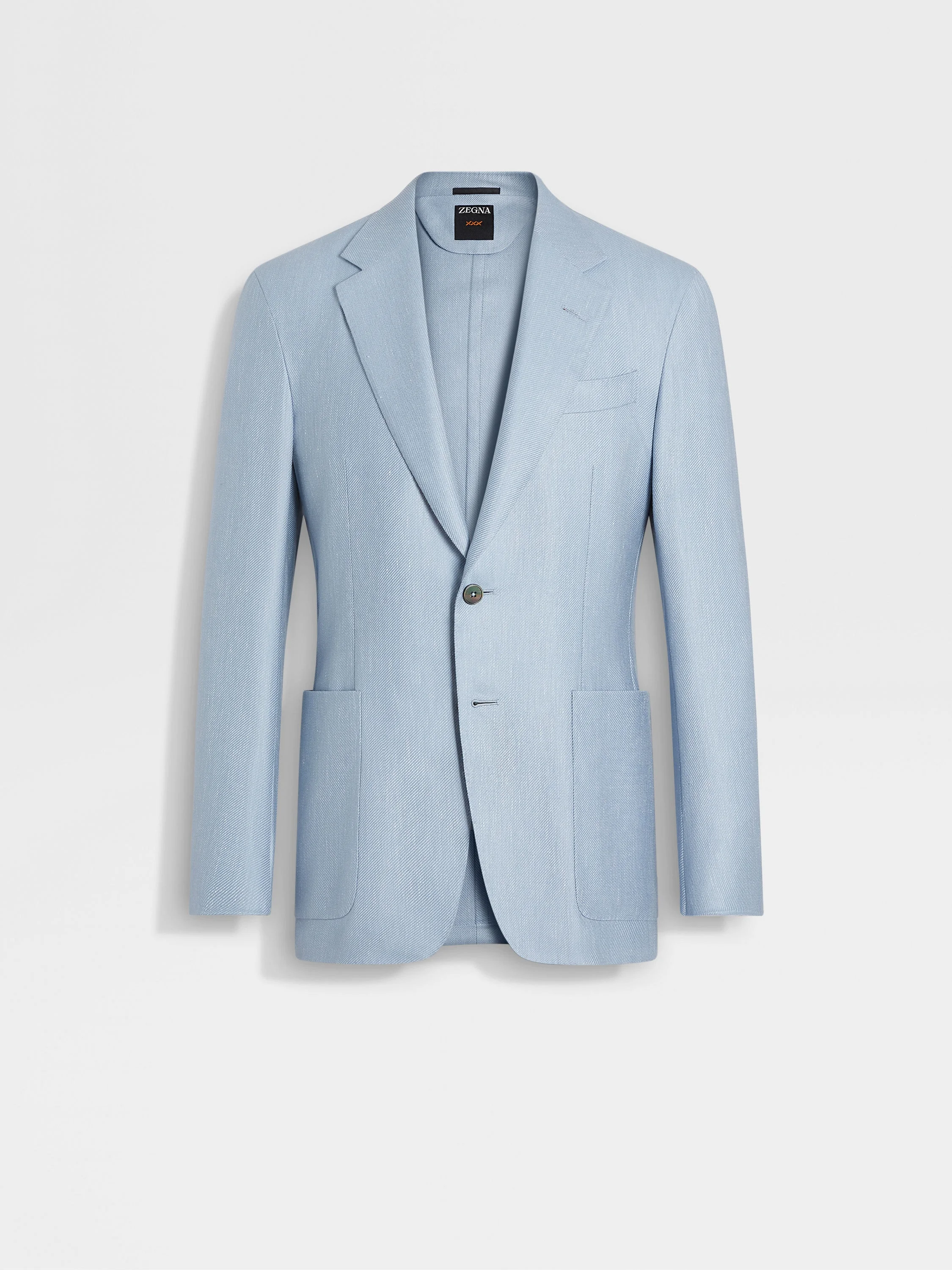 Slip into the effortless sophistication of this light blue jacket, made from a luxurious silk, cashmere and linen blend. INFO A cashmere-silk-linen blend and timeless details: this light blue jacket is the epitome of sartorial sophistication. Unlined for lightweight comfort and elevated with double vents, notch lapels and patch pockets. PRODUCT CODE 259571A2-10JCN0 MATERIALS AND CARE 64% Cashmere; 23% Mulberry Silk; 13% Linen Do not wash. Do not bleach. Do not tumble dry. Iron at max 110° C. Professional dry cleaning in tetrachloroethene and hydrocarbons, mild process. FIT AND PRODUCT DETAILS • Regular fit • Tailoring jacket • Double vents • Notch lapels • Button closure • Patch pockets • Deconstructed, canvas • Unlined • 75 cm length on size 48
