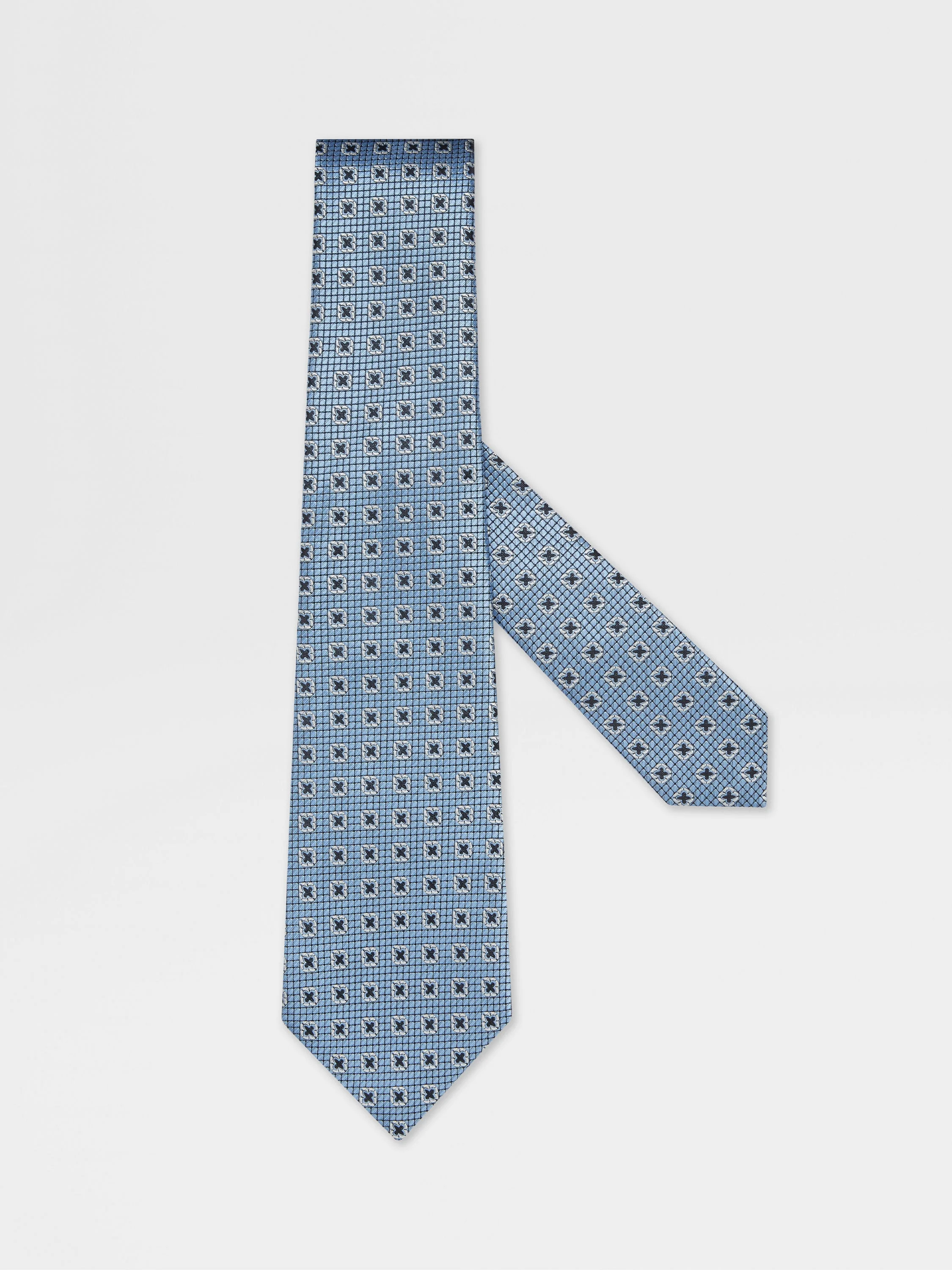 This light blue jacquard silk tie stands out with a charming floral design. INFO Made from pure Mulberry silk, this light blue jacquard tie is designed to complete your most refined looks. The sumptuous quality of natural fibers lends a rich dimension to its elegant floral pattern. PRODUCT CODE Z2C81TA2-1PC-BL3 MATERIALS AND CARE Main body: 100% Mulberry Silk Lining: 100% Mulberry Silk Do not wash. Do not bleach. Do not tumble dry. Do not iron. Professional dry cleaning in tetrachloroethene and hydrocarbons, mild process. FIT AND PRODUCT DETAILS • Blade width: 8 cm / 3.1 in • Flower jacquard pattern