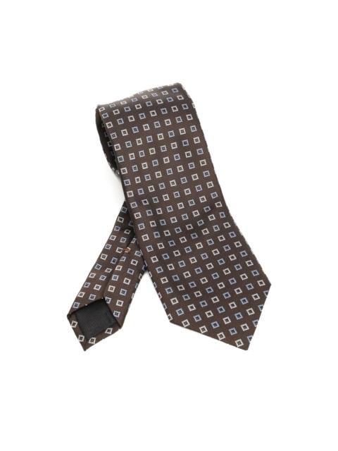 geometric-pattern tie Highlights - Light blue - Geometric pattern - Square motif - Repeating design - Pointed tip Made in Italy Composition Silk 100%