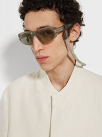 The light green acetate sunglasses are accented with metalic inserts at the corners. INFO A shiny finish adds an extra touch of style to the light green acetate sunglasses' rectangular frame. The thicker sides and temples highlight the sturdy material, while the single bridge keeps the look streamlined. The iconic, metal Zegna 232 Road Brand Mark accentuates the temples, and the temple tips are fitted with details to ensure they stay in place. The sunglasses come with a matching linen lanyard, which fastens with a leather closure. PRODUCT CODE EZ0262-5893N MATERIALS AND CARE Full Acetate Clean your eyewear using a soft cloth, preferably microfiber, with water or a mild detergent. To avoid scratching the lenses, never use paper towels or clothing to clean your eyewear. Do not use household detergents or soaps to clean your eyewear; these products will damage the lenses over time. FIT AND PRODUCT DETAILS • Finishing: shiny • Not suitable for mounting prescription lenses • Single bridge • Matching linen lanyard with leather closure • Zegna Logo on the lens • Parallel line details on the temple tips for optimal grip • Metal Zegna 232 Road Brand Mark on the corners of the temples