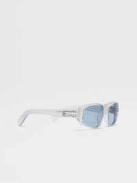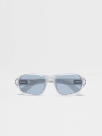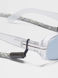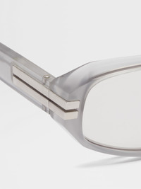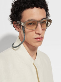 The light grey acetate sunglasses are accented with metalic inserts at the corners. INFO A shiny finish adds an extra touch of style to the light grey acetate sunglasses' rectangular frame. The thicker sides and temples highlight the sturdy material, while the single bridge keeps the look streamlined. The iconic, metal Zegna 232 Road Brand Mark accentuates the temples, and the temple tips are fitted with details to ensure they stay in place. The sunglasses come with a matching linen lanyard, which fastens with a leather closure. PRODUCT CODE EZ0262-5820A MATERIALS AND CARE Full Acetate Clean your eyewear using a soft cloth, preferably microfiber, with water or a mild detergent. To avoid scratching the lenses, never use paper towels or clothing to clean your eyewear. Do not use household detergents or soaps to clean your eyewear; these products will damage the lenses over time. FIT AND PRODUCT DETAILS • Finishing: shiny • Not suitable for mounting prescription lenses • Single bridge • Matching linen lanyard with leather closure • Zegna Logo on the lens • Parallel line details on the temple tips for optimal grip • Metal Zegna 232 Road Brand Mark on the corners of the temples