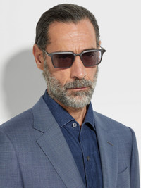 These light grey aluminum and metal sunglasses exude contemporary charm with their narrow rectangular silhouette. INFO Crafted from ultra-flexible light grey aluminum and metal, these sunglasses stand out with soft volumes and convex grooves for a refined three-dimensional finish, pairing a striking rectangular front with barely-there temples that float effortlessly on the face. Adjustable nose pads and grip paddles on the temple tips ensure a secure fit, whilst our iconic 232 Road Brand Mark signs off the looks with Zegna's signature elegance. PRODUCT CODE EZ0273H-5520A MATERIALS AND CARE Aluminum; Metal Clean your eyewear using a soft cloth, preferably microfiber, with water or a mild detergent. To avoid scratching the lenses, never use paper towels or clothing to clean your eyewear. Do not use household detergents or soaps to clean your eyewear; these products will damage the lenses over time. FIT AND PRODUCT DETAILS • Lens 55 mm – Bridge 17 mm – Temple 145 mm • Base 2 • Finishing: matte • Single bridge • Laser-inscribed Zegna Logo on the inside of the temple and on the lens • Zegna 232 Road Brand Mark on the temples