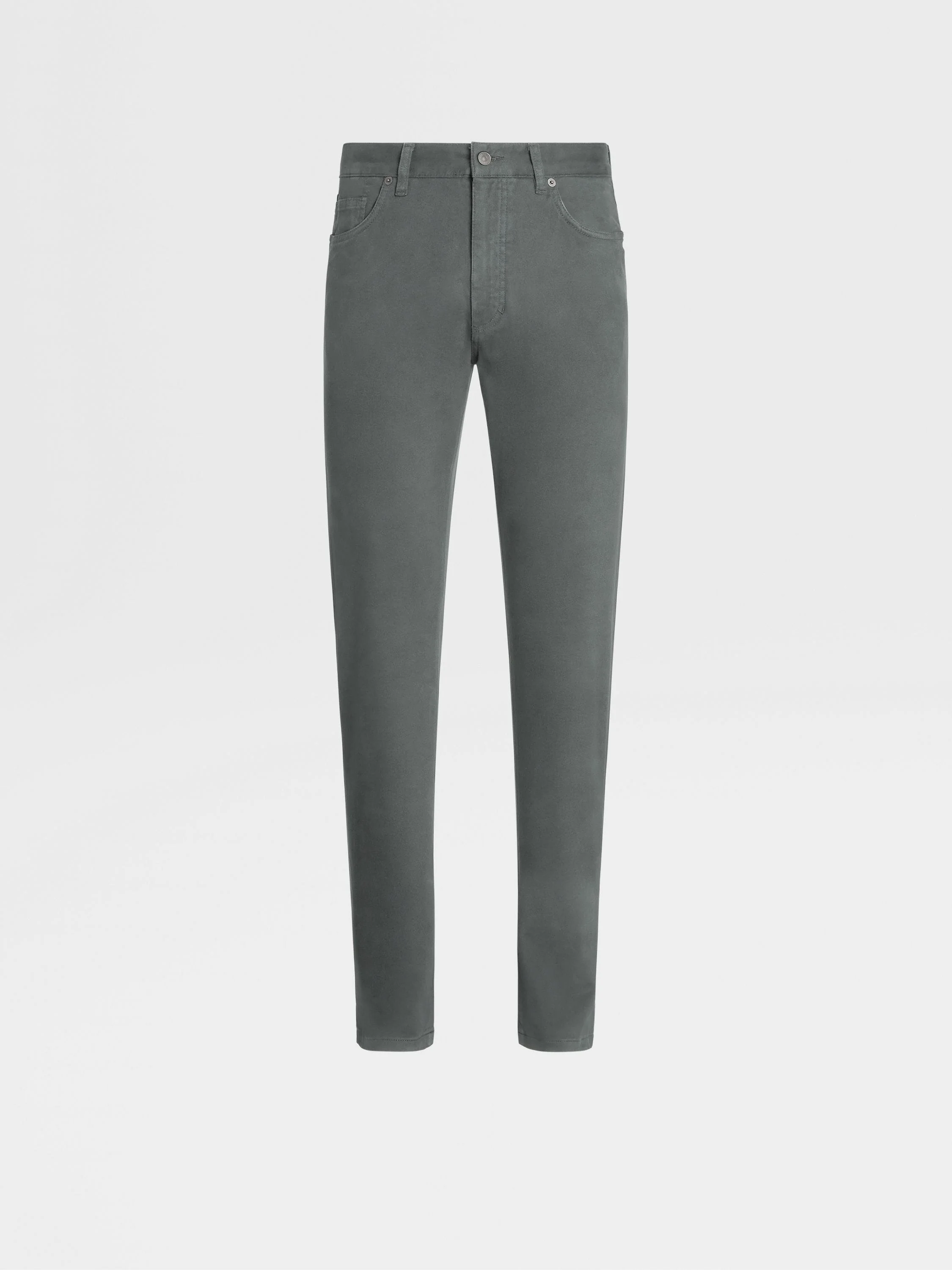 The light grey Roccia jeans are presented in smooth, stretch cotton gabardine. INFO Stretch cotton gabardine gives this classic pair of light grey Roccia jeans an extra smooth finish. The straight fit transitions easily from weekends to casual meetings, ideal for fast-paced contemporary lifestyles. The inspiration for the Roccia Jeans, Roccia the Italian word for 'Rock', was Born in Oasi Zegna — the home of our values in the Italian Alps. Inspired by classic workwear, they're both hardwearing and elegant, making them a reliable foundation to any look. PRODUCT CODE E8PZW-GAN-415 MATERIALS AND CARE 98% Cotton; 2% Elastane Machine wash, cold (30°C / 85°F), gentle or delicate. Do not bleach. Do not dry clean. Do not tumble dry. Dry in shade. Regular ironing, steam or dry, may be performed at low setting (110°C / 230°F). FIT AND PRODUCT DETAILS • Straight fit • 19 cm hem • Button closure • 5-pocket style • Garment dyed