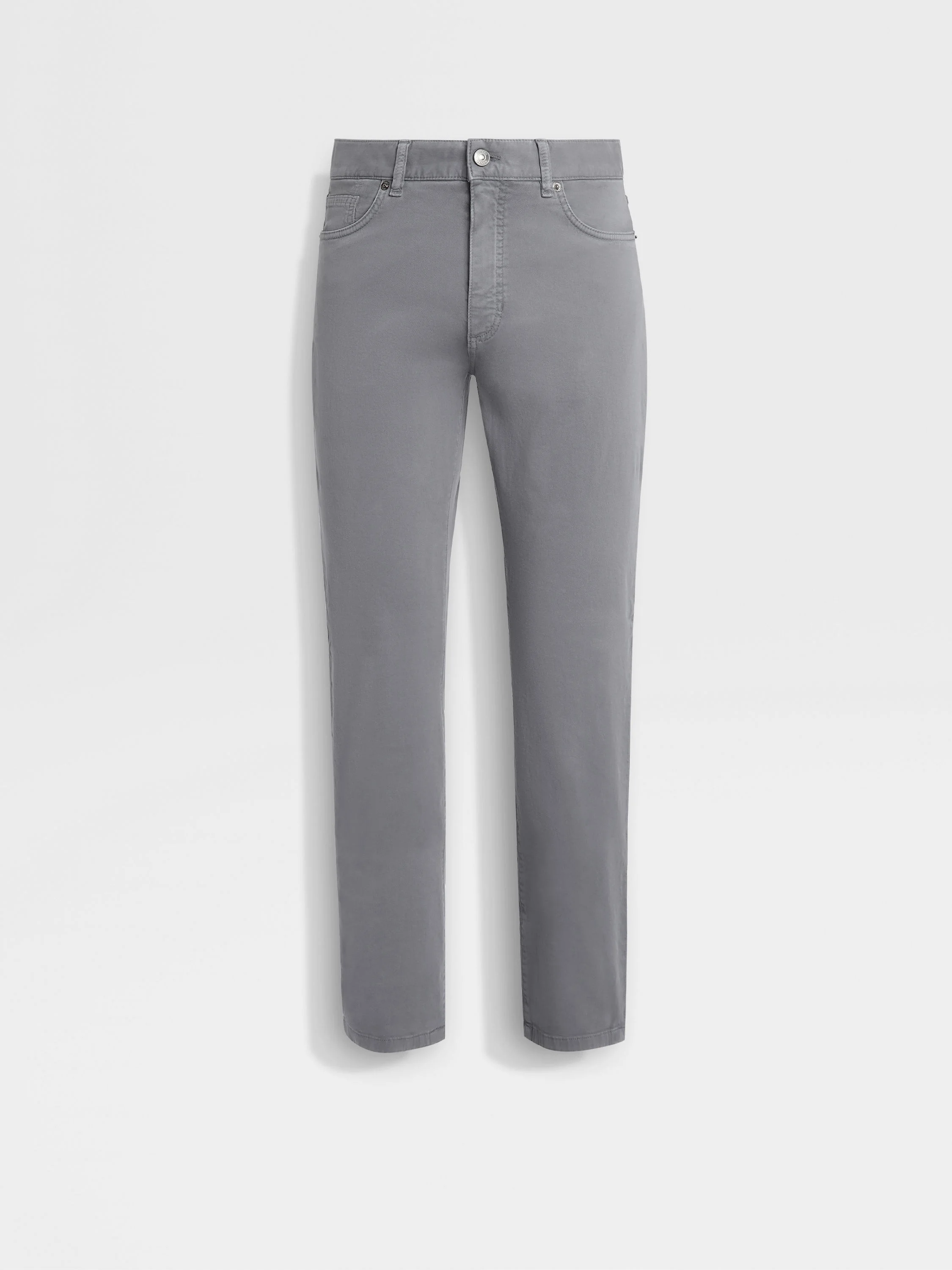 The light grey stretch cotton Roccia jeans are presented in a versatile, garment-dyed colorway. INFO Enhanced with a touch of elasticity for added comfort, the light grey stretch cotton Roccia jeans fit right into elegant contemporary wardrobes. The slim fit elongates the legs, in line with Zegna's vision of dynamic, contemporary menswear. The inspiration for the Roccia Jeans, Roccia the Italian word for 'Rock', was Born in Oasi Zegna — the home of our values in the Italian Alps. Inspired by classic workwear, they're both hardwearing and elegant, making them a reliable foundation to any look. PRODUCT CODE E8PZW-CITY-415 MATERIALS AND CARE Main body: 98% Cotton; 2% Elastane Lining: 100% Cotton Max washing temp 30°C, mild process. Do not bleach. Do not tumble dry. Line drying in the shade. Iron at max 110°C. Do not dry clean. Wash separately. Wash inside out. FIT AND PRODUCT DETAILS • Slim fit • 17.5 cm narrow hem • Zip and button closure • 5-pocket style • Garment-dyed • Denim weight: 350 gr • Model is 187 cm tall (6.1 feet) and wears a UK size 32.