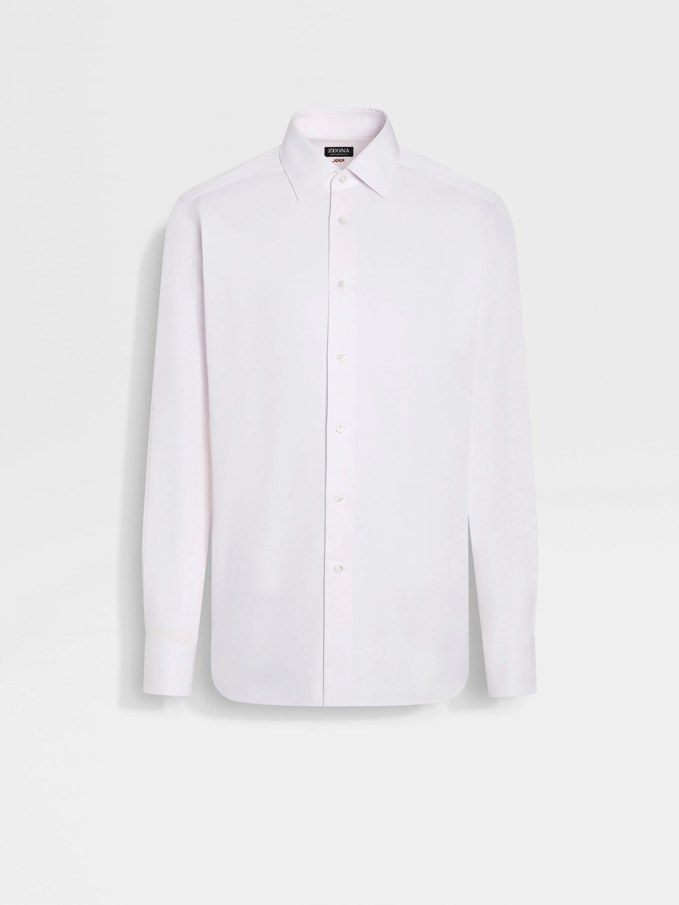Crafted from soft Centoventimila cotton, this light pink long-sleeve shirt is a formal essential. INFO Featuring long sleeves and a spread collar, this shirt is crafted from exquisite Centoventimila cotton for an impeccably smooth feel against the skin. Presented in a structured striped pattern in a charming light pink colorway. PRODUCT CODE 202012A2-9NS0LB MATERIALS AND CARE 100% Cotton Centoventimila – Italian for 120,000 – is named after its high thread count. Garments crafted from this fabric are extremely lightweight and have a soft, silk-inspired hand feel. Max washing temp 40°C. Do not bleach. Do not tumble dry. Iron at max 150°C. Professional dry cleaning in tetrachloroethene and hydrocarbons. FIT AND PRODUCT DETAILS • Regular fit • Tailoring shirt • Spread collar • Standard cuffs • Button closure • Structured striped pattern • 79 cm length on size 39