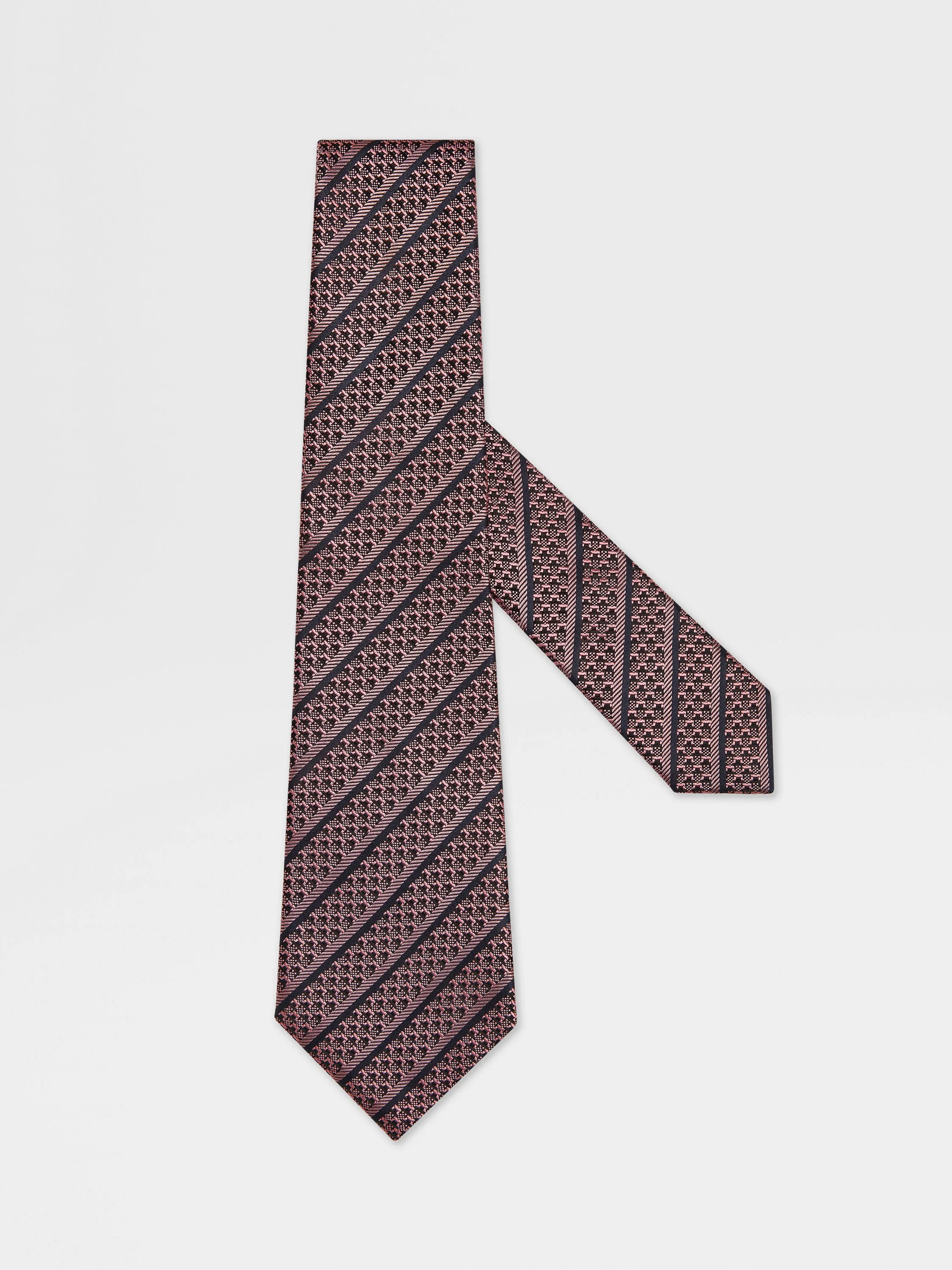 Pure silk and timeless stripes: elevate your office-to-evening ensembles with this light pink jacquard tie. INFO Pure Mulberry silk in a light pink hue provides a sumptuous backdrop for an elegant striped pattern with this jacquard tie. A refined essential for all kinds of formal occasions. PRODUCT CODE Z2C83TA2-1PC-PI1 MATERIALS AND CARE Main body: 100% Mulberry Silk Lining: 100% Mulberry Silk Do not wash. Do not bleach. Do not tumble dry. Do not iron. Professional dry cleaning in tetrachloroethene and hydrocarbons, mild process. FIT AND PRODUCT DETAILS • Blade width: 8 cm / 3.1 in • Striped jacquard pattern