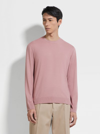 This light pink Vellus Aureum crewneck epitomizes ZEGNA's vision of elevated basics. INFO Crafted from the finest quality wool, this Vellus Aureum crewneck combines comfort and sophistication in equal measures. A refined light pink colorway and timeless silhouette edged with ribbed trims make it an effortless choice for both formal and casual occasions alike. PRODUCT CODE UGA00A2-VELCRW-R02 MATERIALS AND CARE 100% Wool Vellus Aureum was inspired by our Founder’s quest for excellence to seek the finest wool in the world. Exquisitely fine in texture and rare, Vellus Aureum is crafted from 100% certified traceable wool fibres. Wash by hand. Do not bleach. Do not tumble dry. Flat drying. Iron at max 110°C. Professional dry cleaning in hydrocarbons, mild process. Wash and iron inside out. FIT AND PRODUCT DETAILS • Regular fit • 21 gauge • Ribbed crewneck collar • Ribbed hem and cuffs