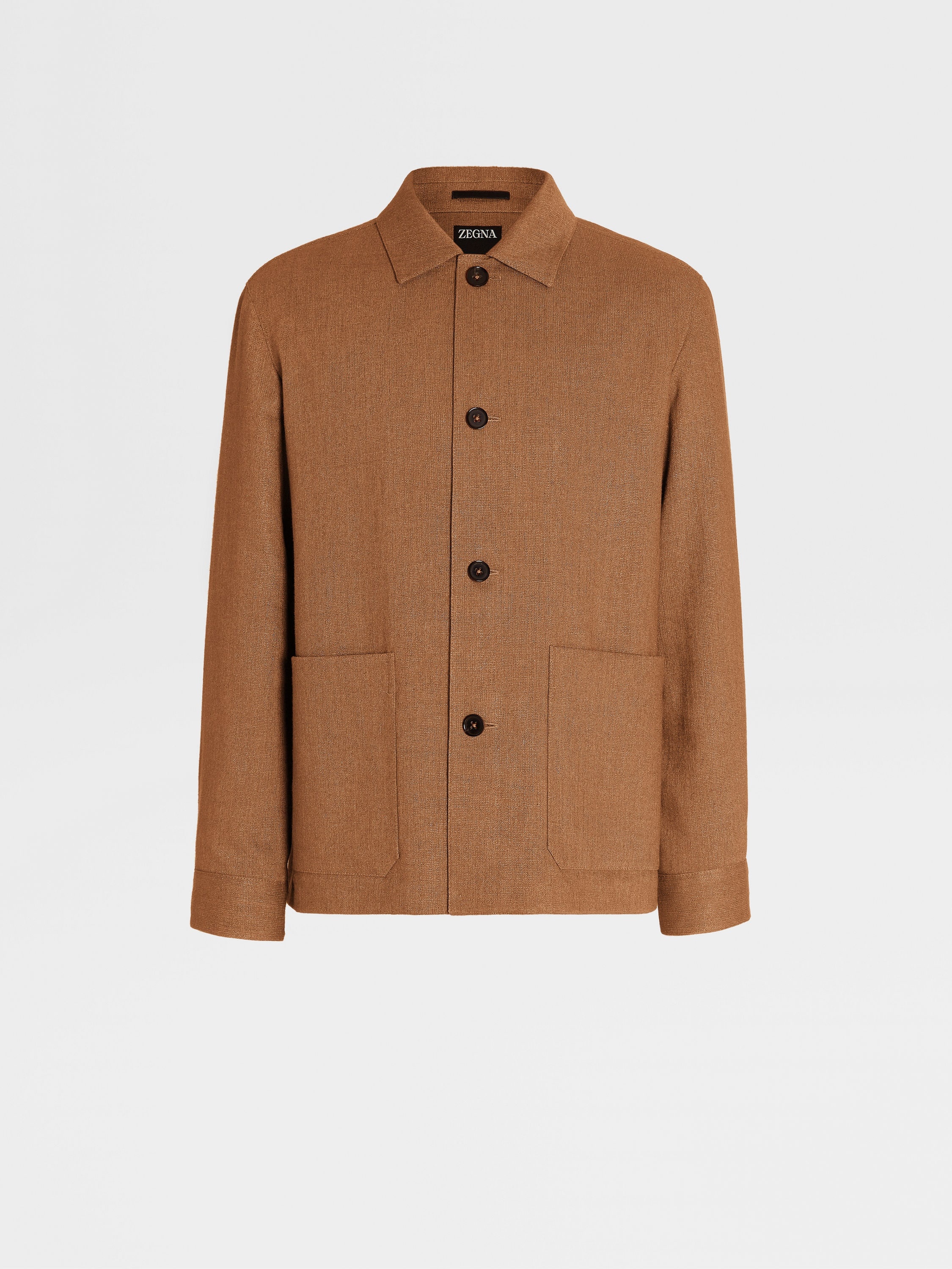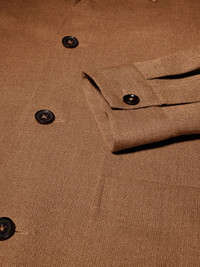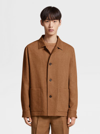 A chic staple, the Foliage chore jacket is made from a linen and silk blend. INFO The Foliage-colored linen and silk blend chore jacket combines refined natural materials with rugged details. Soft and lightweight, the tailoring chore jacket layers effortlessly over contemporary outfits. This deconstructed design is styled with the classic, workwear-inspired shirt collar and patch pockets. PRODUCT CODE 549C03A5-1DHAQ0 MATERIALS AND CARE 35% Linen; 35% Tussah Silk; 19% Wool; 10% Polyamide; 1% Elastane Mild dry clean. Do not bleach. Do not tumble dry. Regular ironing, steam or dry, may be performed at low setting (110°C / 230°F). FIT AND PRODUCT DETAILS • Regular fit • Tailoring chore jacket • Shirt collar • Double vents • Button closure • Patch pockets • Deconstructed, fused • Unlined • 72 cm length on size 48 • Model is 186 cm tall (6.1 feet) and wears an Italian size 48.