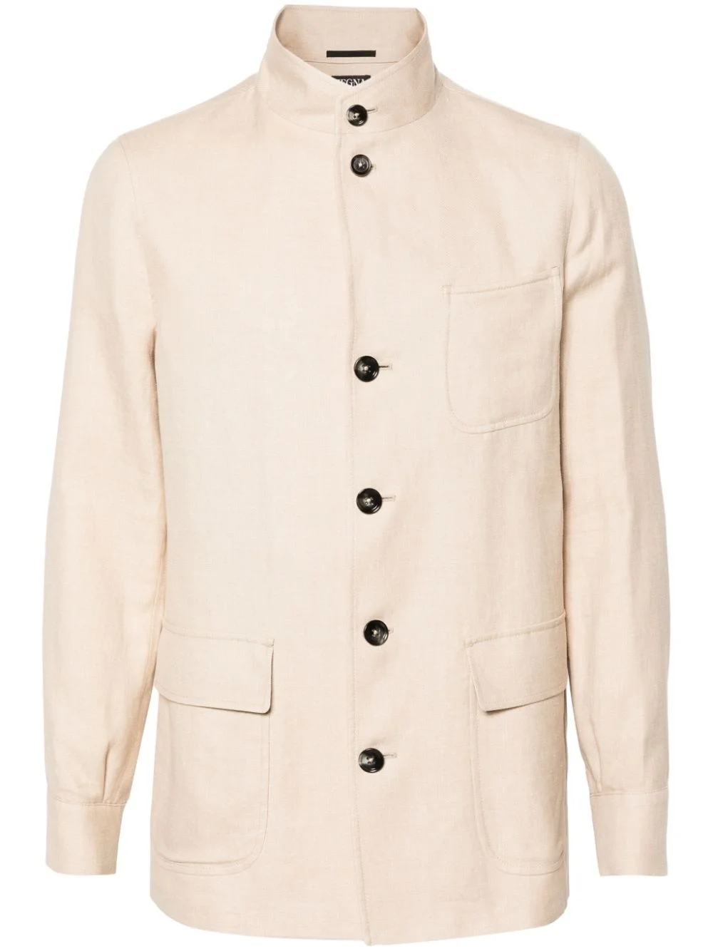 linen-blend shirt jacket Highlights - Sand beige - Linen-wool blend - Band collar - Front button fastening - Long sleeves - Buttoned cuffs - Chest patch pocket - Two front flap pockets - Straight hem Imported Composition Outer: Linen/Flax 60%, Wool 40% Lining: Cupro 100% SIZE & FIT Model measurements Height 6 ft 2 in(1.87 m) Bust/Chest 36.22 in(92 cm) Hips 37 in(94 cm) Waist 27.95 in(71 cm) FittingInformation Designed for a relaxed fit, this piece allows for comfort and movement when worn Made from a midweight non-stretch fabric This piece fits true to size – take your usual size