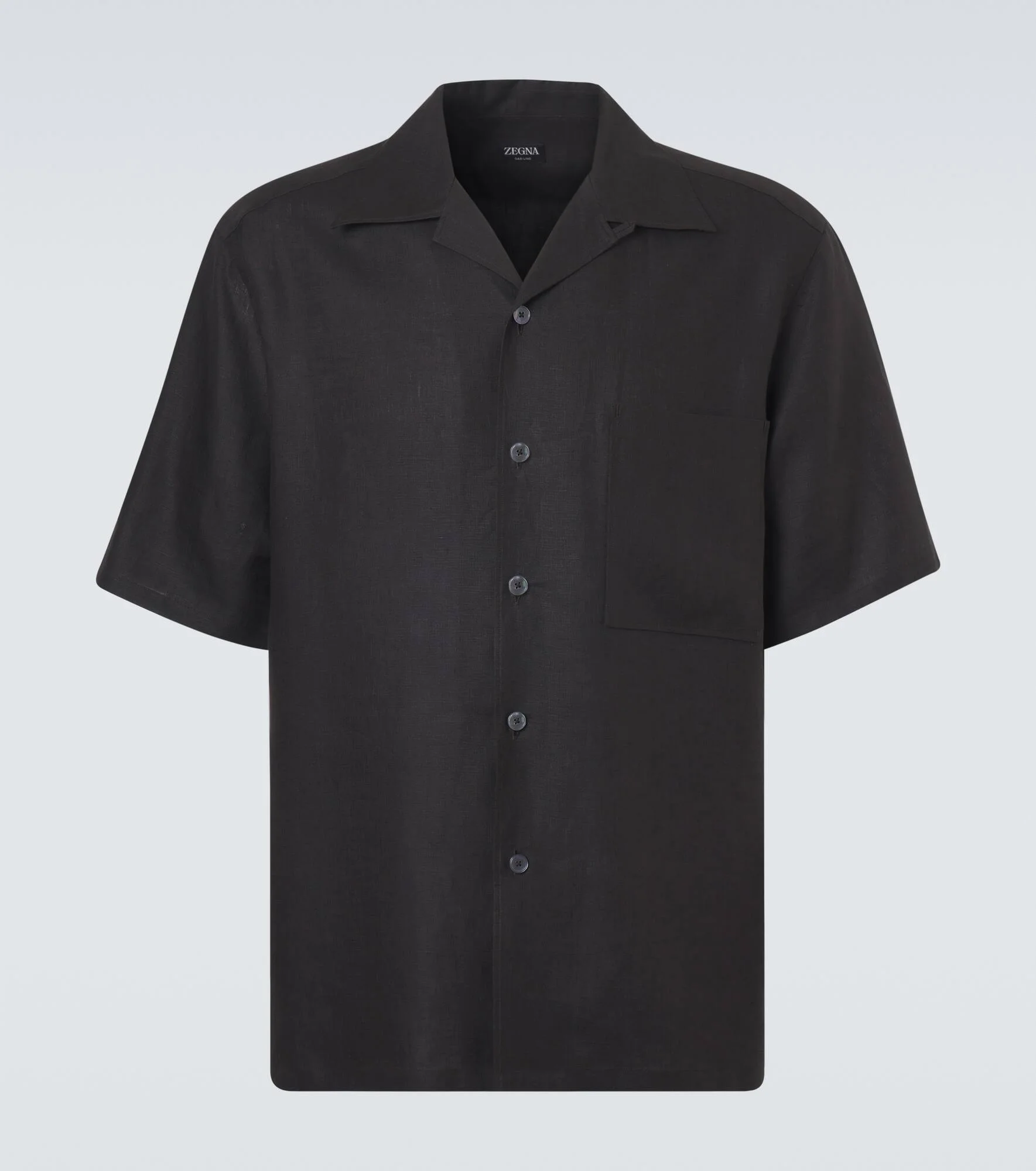 Established with the aim to create the world’s finest fabrics, Zegna is now the go-to brand for luxurious and innovative menswear. This bowling shirt is crafted from linen and boasts a breezy silhouette. Product Details - Material: 100% linen - Care instructions: machine wash at 30 degrees - Made in Italy - Color: brown - Designer color name: Dark Brown - Contains non-textile parts of animal origin - Closure: buttoned front - Pockets: breast pocket - Item number: P01137423 Size & Fit - True to size - Without pleats in the back - Designed for a loose fit - Non-stretchy fabric - Falls below the hip - The model in the picture is 185cm-6'1" and wearing a size L