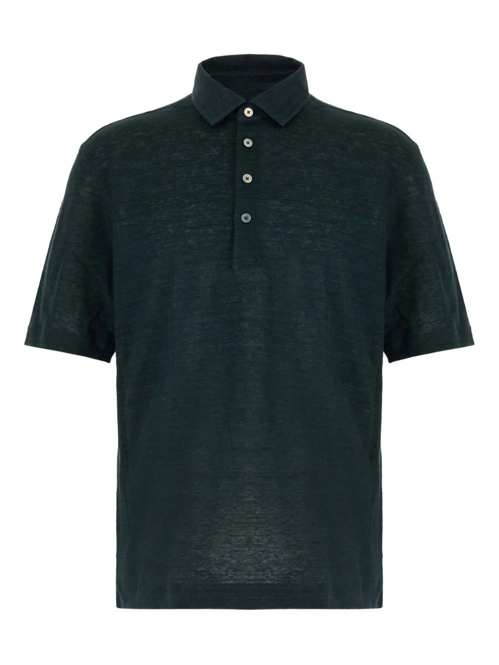 linen buttoned polo shirt Highlights - Dark teal green - Short sleeves - Four-button placket - Linen Imported Composition Linen/Flax 100% Washing instructions Read Manufacturer Guidelines