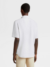 The white pure linen short-sleeve shirt is a versatile favorite. INFO Made from a lightweight natural material, the white pure linen short-sleeve shirt feels fresh against the skin. The short-sleeve shirt is styled with a one-piece collar and hand-stitched details. PRODUCT CODE UCX31A6-SCO3-014 MATERIALS AND CARE 100% Linen Max washing temp 30°C, mild process. Do not bleach. Do not tumble dry. Iron at max 110°C. Professional dry cleaning in tetrachloroethene and hydrocarbons. FIT AND PRODUCT DETAILS • Regular fit • One-piece collar • Button closure • Rounded hem • Hand-stitched details • 79 cm length on size 39 • Model is 188 cm tall (6.2 feet) and wears an Italian size 39.
