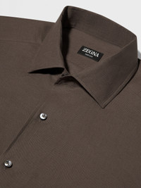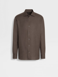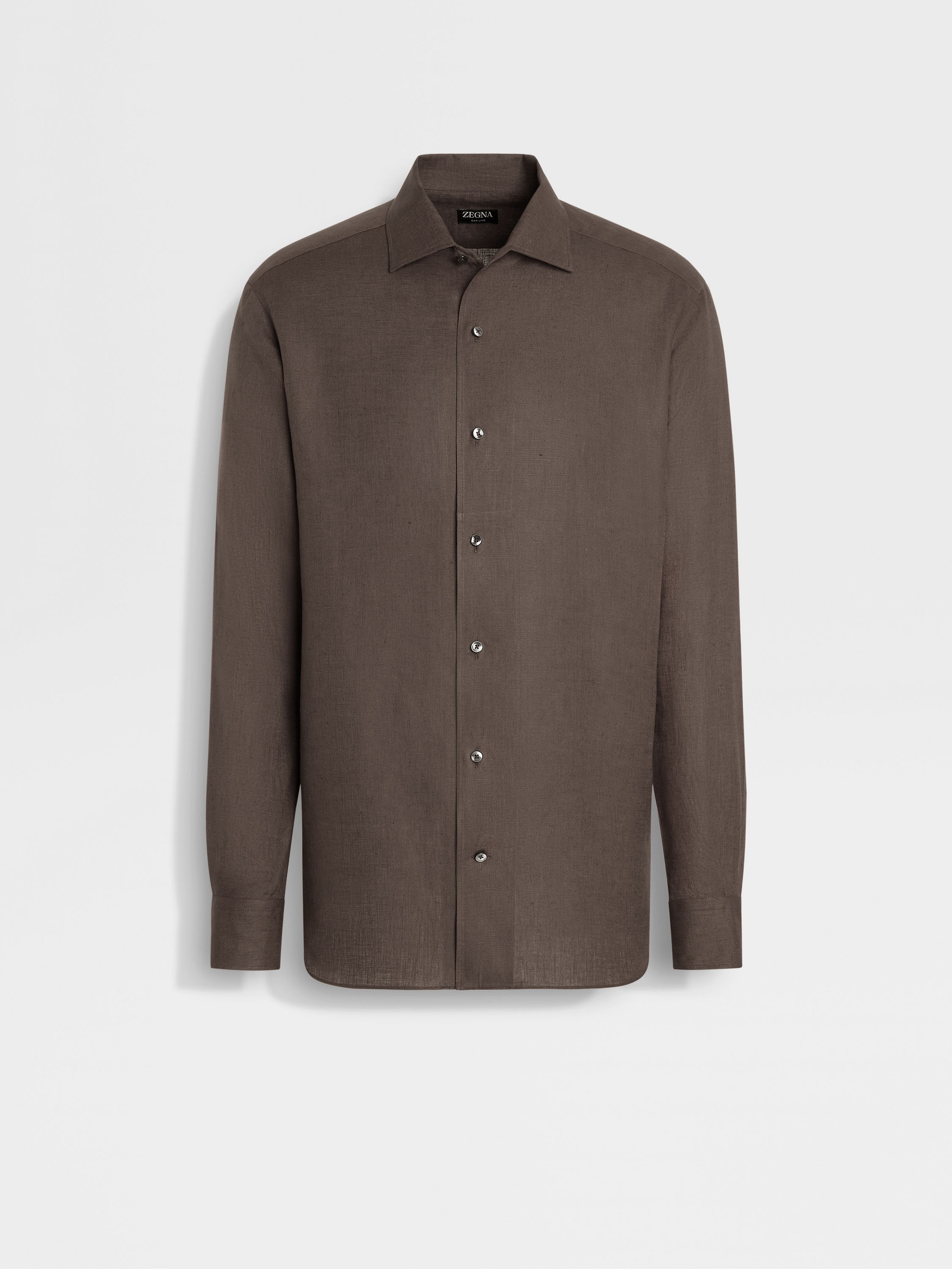 Embrace the natural charm of pure linen in this dark taupe Oasi Lino shirt. INFO This long-sleeved shirt with rounded hem is made from Zegna's exquisite Oasi Lino, spun from 100% traceable, European-grown fibers. Hand-stitched detailing enriches its dark taupe colorway. PRODUCT CODE UFX30A9-SRO3-N07 MATERIALS AND CARE 100% Linen The inspiration behind this Oasi Lino garment was Born in Oasi Zegna, a 100km² natural territory and the home of our values. Crafted from European-grown flax fibres that are certified as 100% traceable from 2024, Oasi Lino follows in the footsteps of our founder, who envisioned a vertically integrated system of producing textiles. Max washing temp 30° C, mild process. Do not bleach. Do not tumble dry. Iron at max 110° C. Professional dry cleaning in tetrachloroethene and hydrocarbons. FIT AND PRODUCT DETAILS • Regular fit • One-piece collar • Standard cuffs • Button closure • Rounded hem • Hand-stitched details • 79 cm length on size 39