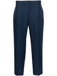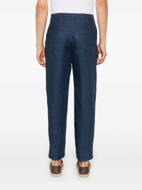 linen straight-leg trousers Highlights - Navy blue - Linen/flax - Tonal stitching - Pressed crease - Two side inset pockets - Two rear button-fastening pockets - Straight leg - Concealed fly and button fastening - Elasticated drawstring waistband Made in Italy Composition Outer: Linen/Flax 100% Lining: Cotton 100% SIZE & FIT Model measurements Height 6 ft 2 in(1.87 m) Bust/Chest 36.41 in(92.5 cm) Hips 35.43 in(90 cm) Waist 29.52 in(75 cm) FittingInformation Designed for a tapered leg, offering a loose unrestricted fit over the leg with a closer fit towards the ankle Adjust this piece’s waistband to your preference using the drawstring Made from a midweight non-stretch fabric This piece fits true to size – take your usual size
