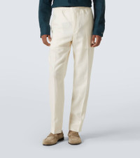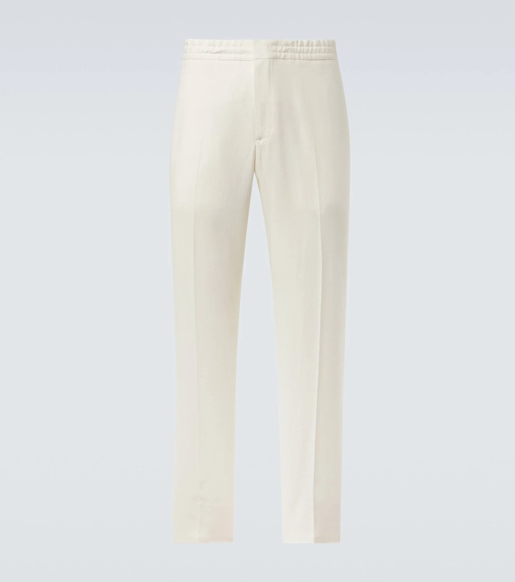 Established with the aim to create the world’s finest fabrics, Zegna is now the go-to brand for luxurious and innovative menswear. These straight pants are crafted from linen and have a subtle elasticated waistband. Product Details - Material: 100% linen - Care instructions: dry clean - Made in Italy - Designer color name: Bianco Zegna - Item color: beige - Lining: 100% cotton - Closure: drawstring and zip - Pockets: side slit pockets, back pockets - Elasticated waistband - Item number: P01021835 Size & Fit - True to size - Elasticated waist - Adjustable at the waist - Non-stretchy fabric - Slim-leg - Height of model is 189cm-74.5" and wears a size 50