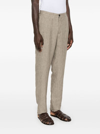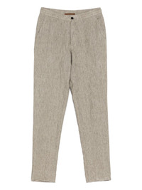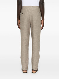 linen trousers Highlights - Light brown - Concealed fly and button fastening - Elasticated waistband - Two side slash pockets - Two rear button-fastening pockets Imported Composition Lining: Cotton 100% Outer: Linen/Flax 100% SIZE & FIT Model measurements Height 6 ft 2 in(1.87 m) Bust/Chest 36.41 in(92.5 cm) Hips 37 in(94 cm) Waist 29.52 in(75 cm) FittingInformation Designed for a tapered leg, offering a loose unrestricted fit over the leg with a closer fit towards the ankle Adjust this piece’s waistband to your preference using the drawstring Made from a lightweight non-stretch fabric