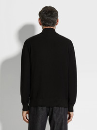The black Cashseta full zip cardigan features a two-toned jacquard knit pattern. INFO Knit from Zegna's refined blend of cashmere and silk, the black Cashseta full zip cardigan is luxuriously soft to the touch. The zip-up cardigan features a ribbed stand collar and matching trim. This special material is yarn-dyed, creating subtle variations in each garment's pattern. PRODUCT CODE UEJ92A8-157-K09 MATERIALS AND CARE 70% Cashmere; 30% Mulberry Silk This sophisticated fabric combines the softness of cashmere with the smooth finish of fine silk. The yarns of Cashseta are dyed before the fabric is created, resulting in a melange that is unique to each garment. Wash by hand. Do not bleach. Do not tumble dry. Flat drying. Iron at max 110°C. Professional dry cleaning in hydrocarbons, mild process. Wash and iron inside out. FIT AND PRODUCT DETAILS • 18 gauge • Ribbed stand collar • Long sleeves • Ribbed trims • Full zip closure • Bicolor jacquard knit