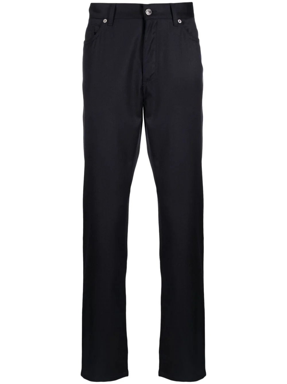 logo-patch wool slim-fit trousers Highlights - Navy blue - Wool - Logo patch to the rear - Rivet detailing - Tonal stitching - Belt loops - Slim cut - Concealed fly and button fastening - Two side inset pockets - Two rear patch pockets Imported Composition Outer: Wool 100%, Leather 100% Lining: Cotton 100%, Polyester 95%, Spandex/Elastane 5% SIZE & FIT Model measurements Height 6 ft 0 in(1.84 m) Bust/Chest 36.22 in(92 cm) Hips 35.43 in(90 cm) Waist 26.77 in(68 cm) FittingInformation Designed for a straight-leg, allowing for an unrestricted and comfortable fit over the leg Made from a midweight non-stretch fabric This piece fits true to size – take your usual size