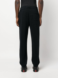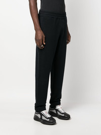 logo-print cotton track pants Highlights - Black - Cotton - Melange effect - Logo print at the leg - Elasticated waistband - Two side inset pockets - Elasticated ankles Imported Composition Lining: Cotton 100% Outer: Cotton 100% SIZE & FIT Model measurements Height 6 ft 2 in(1.89 m) Bust/Chest 39.76 in(101 cm) Hips 37.4 in(95 cm) Waist 29.92 in(76 cm) FittingInformation Designed for a relaxed tapered leg, allowing a comfortable loose fit above the knee with a closer fit towards the calves The elasticated hem at the ankle allows for movement and a comfortable fit Made from a midweight non-stretch fabric, this piece offers minimal elasticity when worn This piece fits true to size – take your usual size Washing instructions Hand Wash