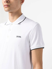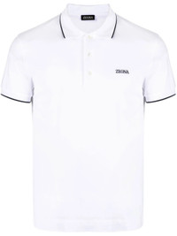 optical white stretch-cotton contrasting trim embroidered logo at the chest polo collar short front button fastening short sleeves straight hem - Color: WHITE - Made in: Turkey - Designer Style ID: RE7358A5 B746 N00 Composition and care Cotton: 95.0%, Elastane: 5.0%