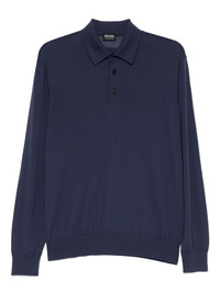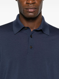 long-sleeved polo shirt Highlights - Navy blue - Wool - Long sleeves - Front button placket - Ribbed cuffs and hem - Polo collar Made in Italy Composition Wool 100% SIZE & FIT Model measurements Height 6 ft 3 in(1.9 m) Bust/Chest 35.43 in(90 cm) Hips 35.82 in(91 cm) Waist 27.95 in(71 cm) Washing instructions Read Manufacturer Guidelines