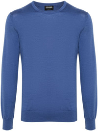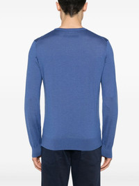 melange ribbed jumper Highlights - Blue - Cashmere-silk blend - Ribbed knit - Melange effect - Ribbed trim - Embossed logo to the rear - Round neck - Long sleeves - Straight hem - Unlined Made in Italy Composition Cashmere 70%, Silk 30% SIZE & FIT Model measurements Height 6 ft 1 in(1.86 m) Bust/Chest 37.4 in(95 cm) Hips 36.22 in(92 cm) Waist 29.52 in(75 cm) FittingInformation Designed for a slim fit, offering a comfortable fit that sits just away from the body Made with a lightweight knit, this piece offers some stretch This piece fits true to size – take your usual size Washing instructions Hand Wash
