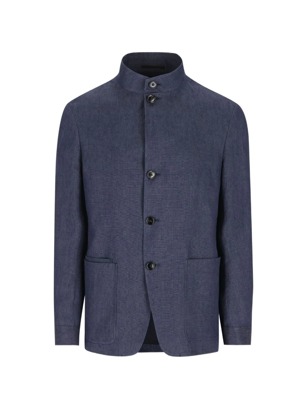 mandarin-collar jacket Highlights - Blue - Button fastening - Mandarin collar - Patch pockets - Long sleeves - Buttoned cuffs Imported Composition Fabric 100% Washing instructions Read Manufacturer Guidelines