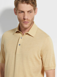 PASTEL YELLOW MÉLANGE SILK CASHMERE AND LINEN POLO SHIRT
