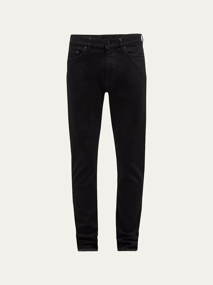 ZEGNA jeans in black wash stretch denim fabric with classic five-pocket style Button-zip front; belt loops Regular rise; flat front Logo patch at back Slim, straight legs Full length Classic fit Cotton/elastane Imported Online Inquiries: BGS21_NCXCE| Store Inquiries: #4381136