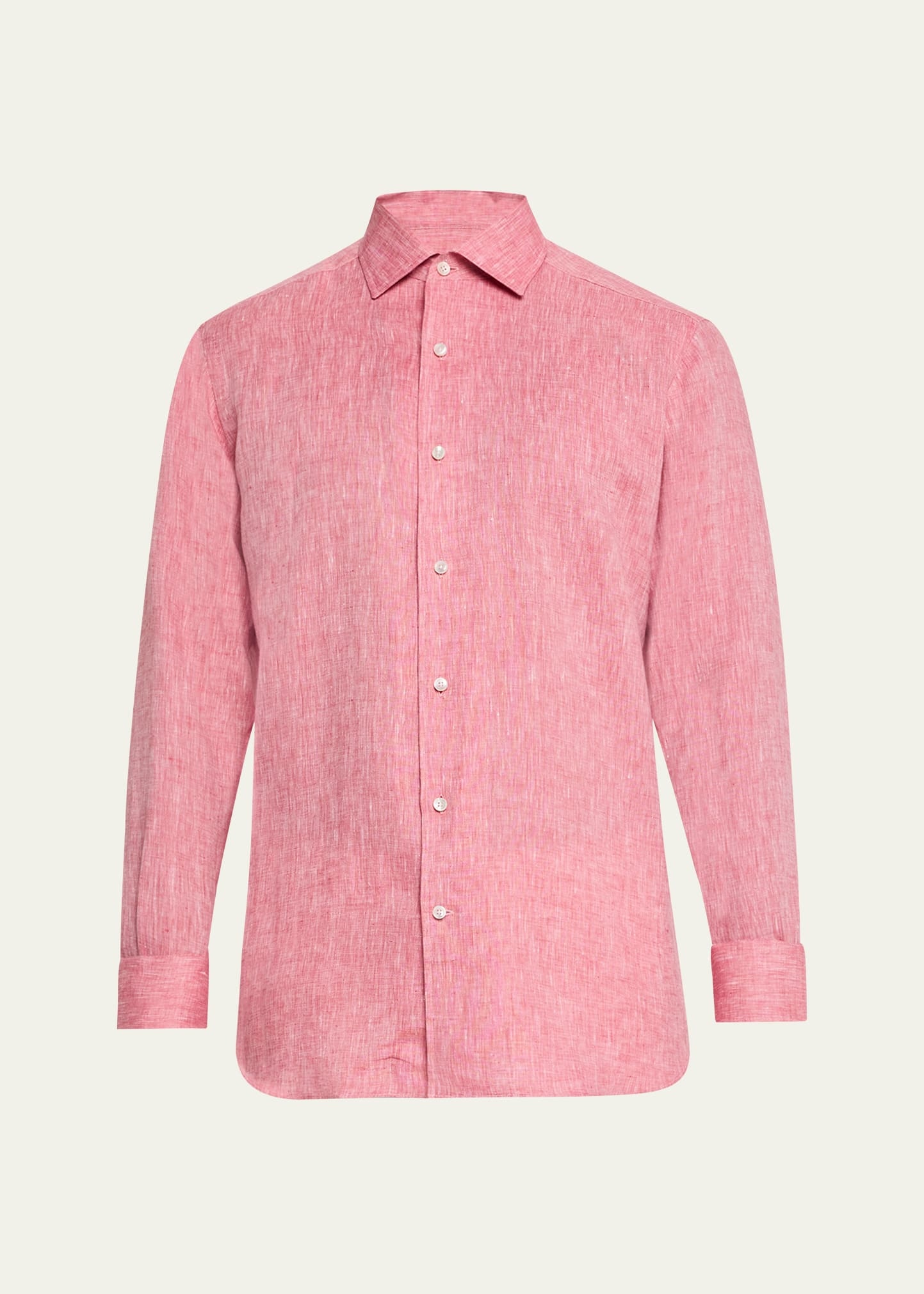 ZEGNA "Azeala" casual button-down shirt in solid Oasi Lino Oasi Lino linen is crafted exclusively from European-grown flax fibers Point collar Button placket Long sleeves Round barrel cuffs Shirttail hem Linen Dry clean Made in Italy Model is 6'1"/185cm. Online Inquiries: BGS21_NCH4T| Store Inquiries: #4883576