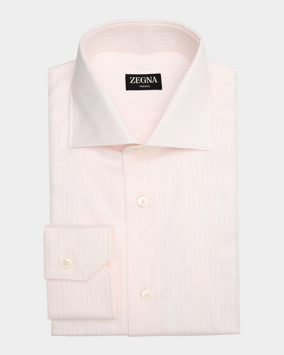 - ZEGNA vertical stripe dress shirt in Trofeo™ cotton, renowned for a silky smooth finish and added wrinkle-resistance - Genuine mother-of-pearl buttons - Point collar - Button placket - Long sleeves - Mitered barrel cuffs - Classic fit - Cotton - Unlined - Dry clean, machine wash line dry - Imported