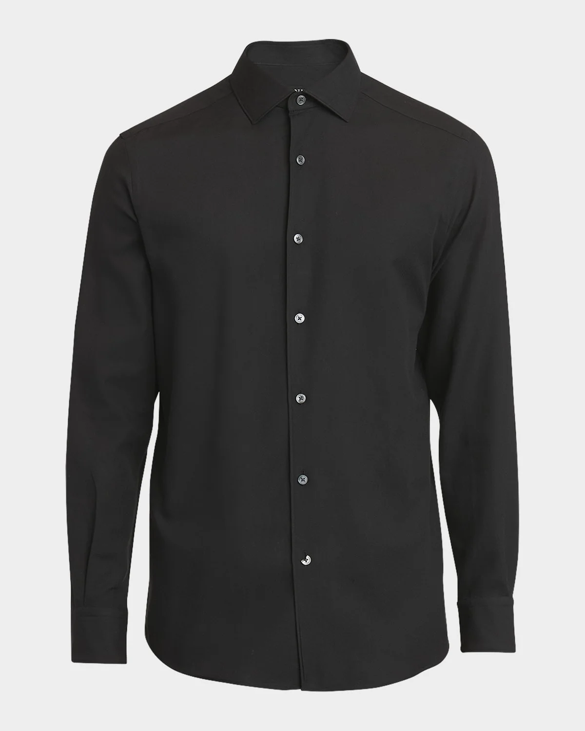ZEGNA sport shirt crafted from a refined combination of cashmere and cotton for an extra-soft finish Point collar; button placket Long sleeves Round barrel cuffs Yoked back shoulders Curved hem Cotton/cashmere Hand wash Imported
