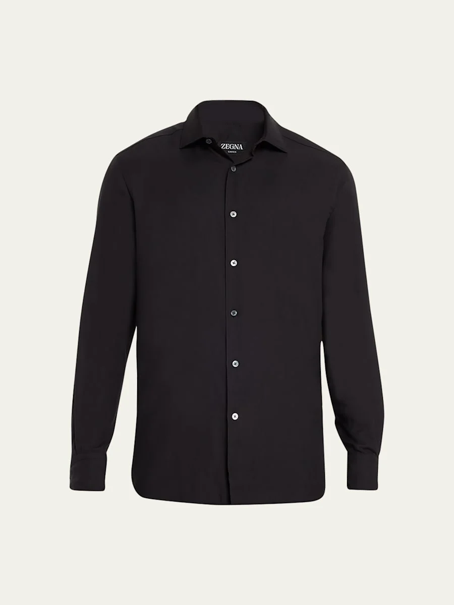 ZEGNA sport shirt crafted from a refined combination of cashmere and cotton for an extrasoft finish Point collar; button placket Long sleeves Round barrel cuffs Yoked back shoulders Curved hem Cotton/cashmere Hand wash Imported
