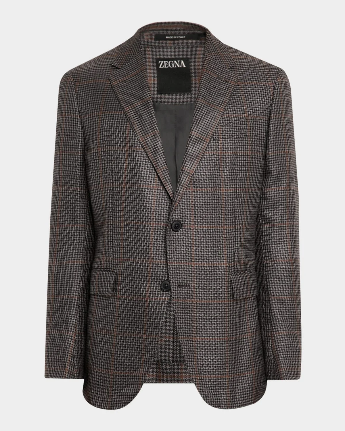 - ZEGNA sport coat in lustrous cashmere and silk, accented with a timeless houndstooth windowpane pattern - Notched lapels - Single-breasted front - Barchetta chest pocket - Internal breast pocket - Hip flap pockets - Double-vented back - Cashmere/silk - Unlined - Dry clean - Made in Italy