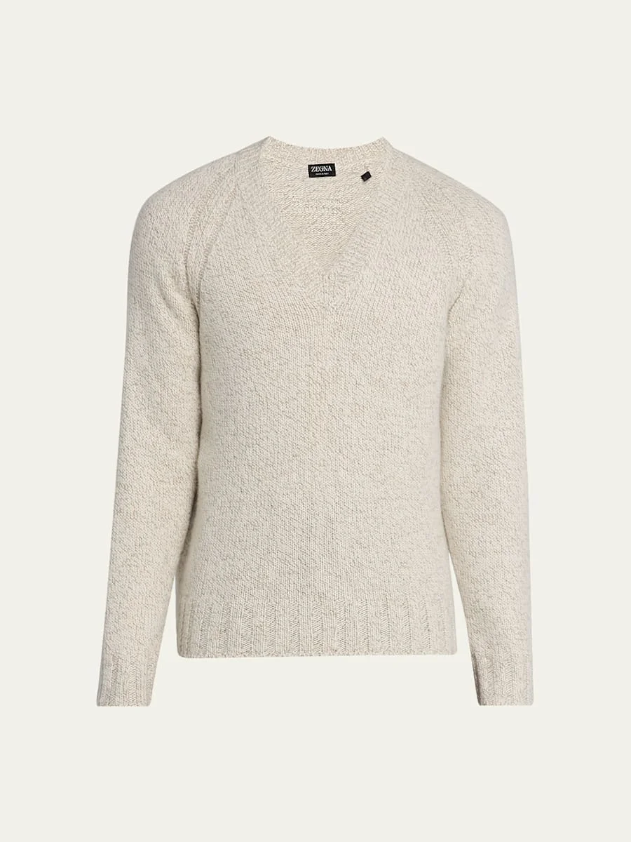 Men's Cashmere and Wool Chunky Knit V-Neck Sweater
