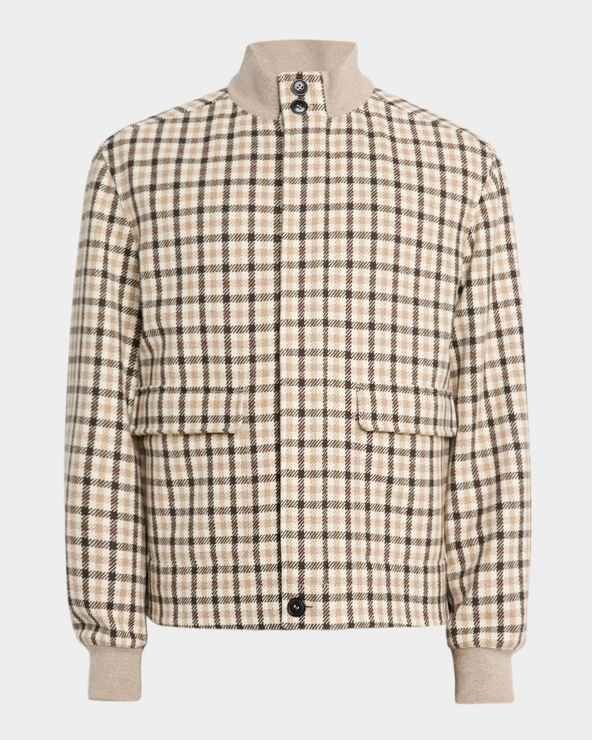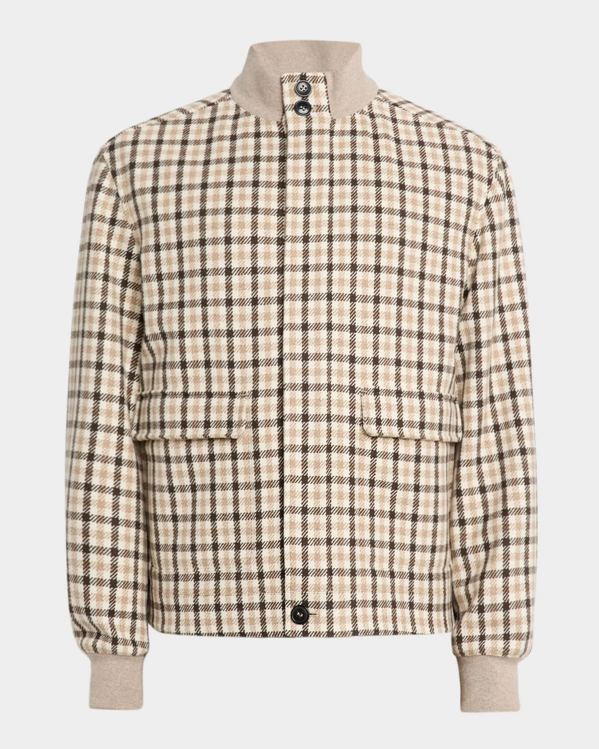 Men's Cashmere Check Hidden-Zip Chore Jacket