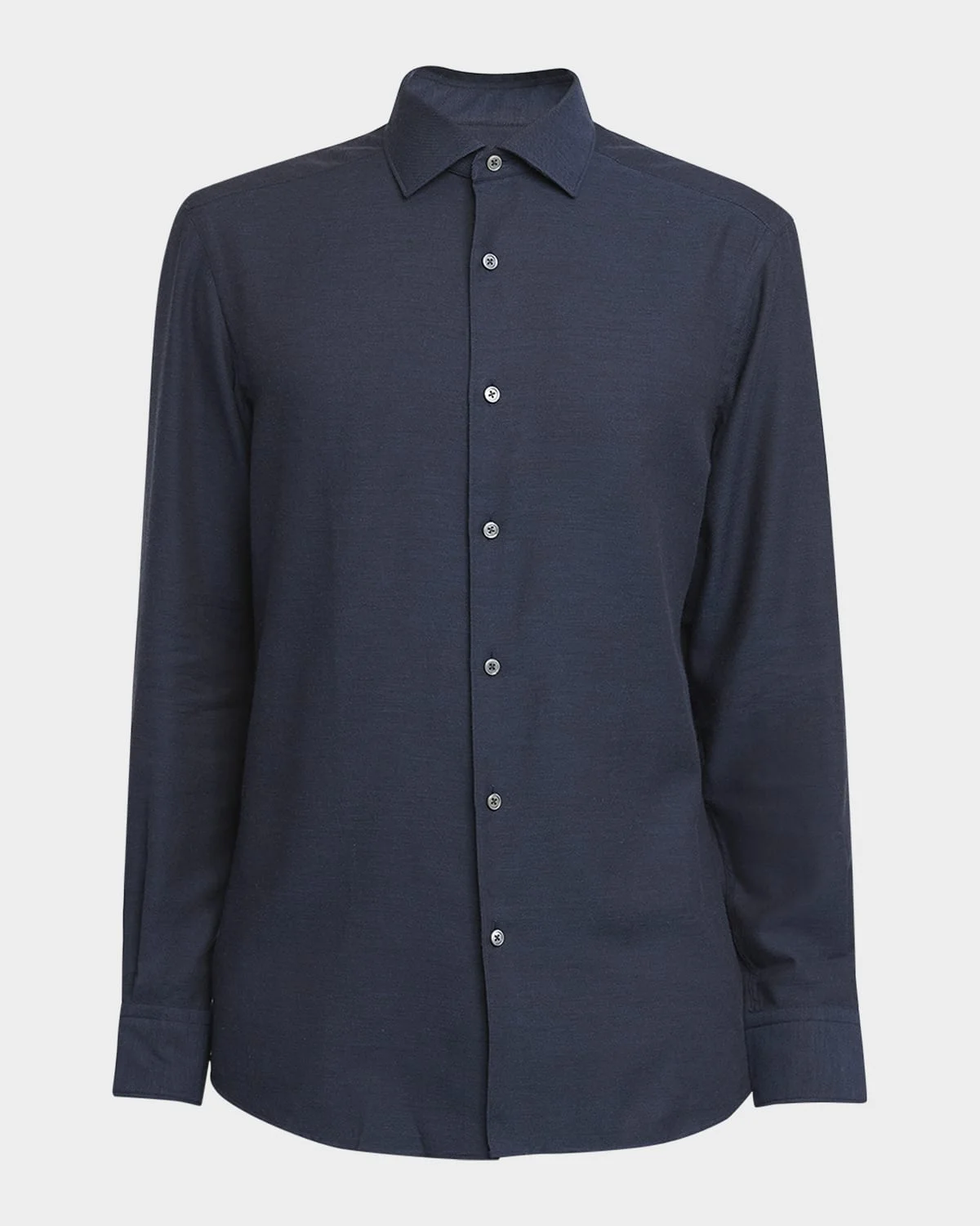 ZEGNA solid sport shirt crafted from a refined combination of cashmere and cotton for an extra-soft finish Point collar; button placket Long sleeves Round barrel cuffs Yoked back shoulders Curved hem Cotton/cashmere Imported