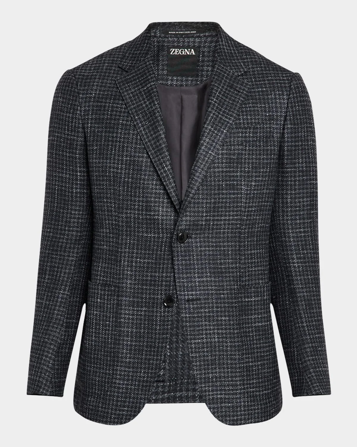 - ZEGNA sport coat in two-tone check - Notched lapels - Two-button closure - Chest welt pocket - Hip patch pockets - Unfinished sleeves - Double-vented back - Wool/silk/linen - Dry clean - Made in Italy