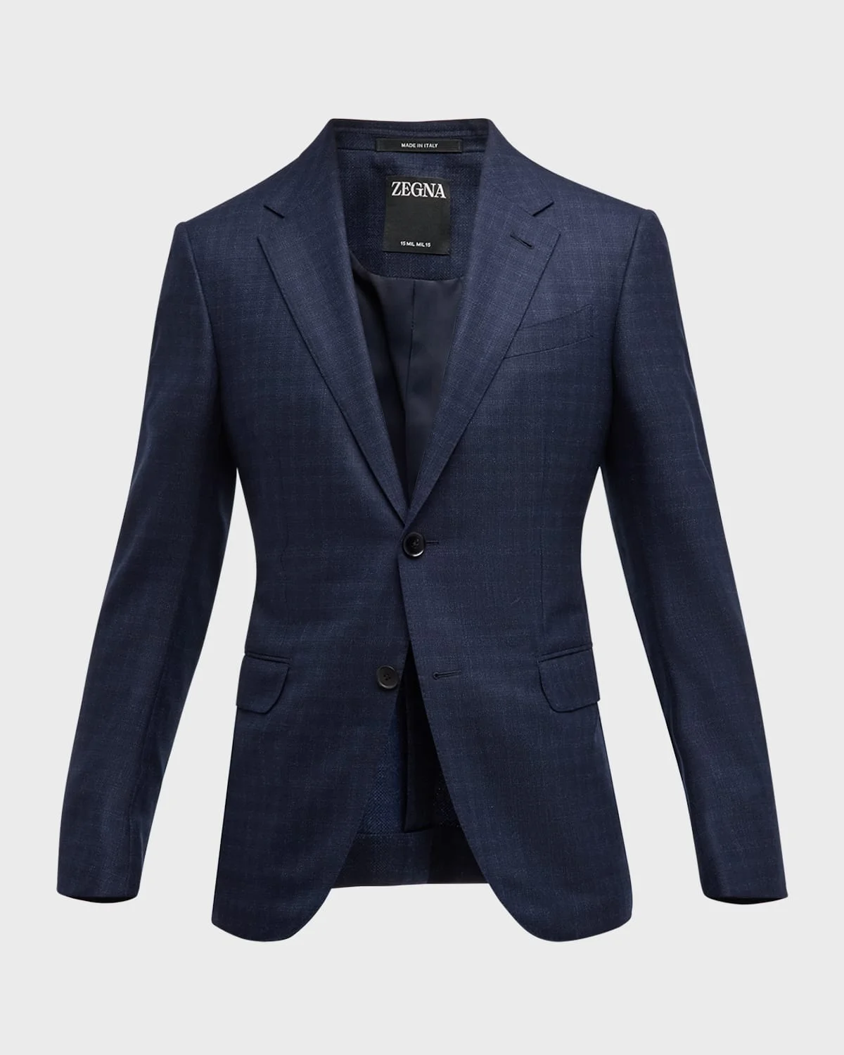 - ZEGNA tonal check blazer in wool - Notched lapels; two-button front - Chest welt pocket - Hip flap pockets - Unfinished sleeves - Double-vented back - Wool - Dry clean - Made in Italy - Model is 6'1"/185cm.