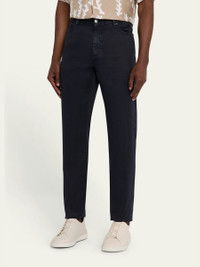 ZEGNA "City" pants in a linen and cotton blend for a comfortable fit Regular rise Five-pocket style Fitted through straight legs Full length Button-zip front; belt loops Linen/cotton/elastane Dry clean Trim: Leather Made in Italy Online Inquiries: BGS21_ND42U| Store Inquiries: #5022476
